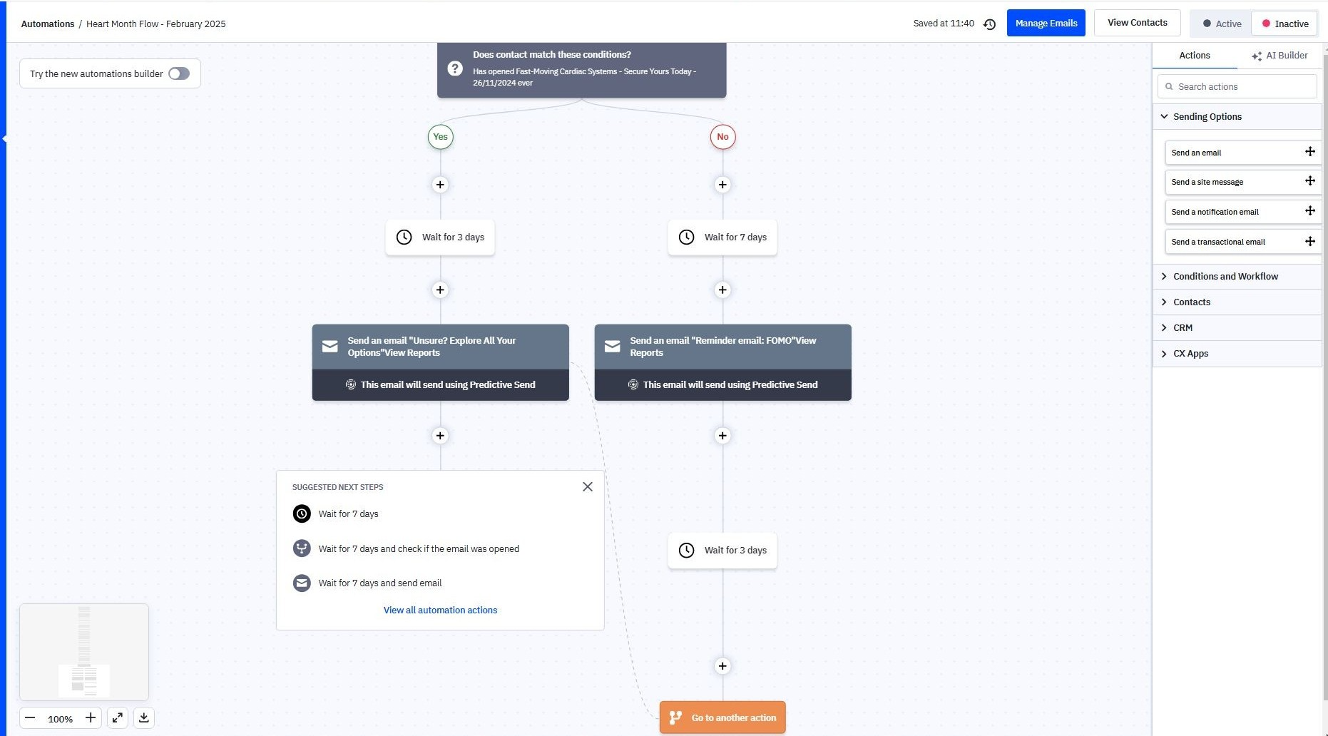 Design 9. Email automation flow for Heart Month campaign; screenshot of one part of the flow